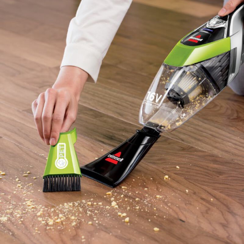 Specially designed pet features and tools advanced pet hair brush roll rubberized to help pickup hair and debris on hard floors and carpeted areas. The bissell bolt lithium pet vacuum also includes a convenient charging base for rapid recharge and storage of multiple tools. Not only is it lightweight when it s used as a cordless vac but it s even lighter when used as a handheld vac.