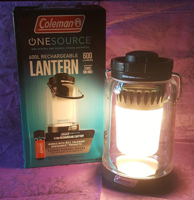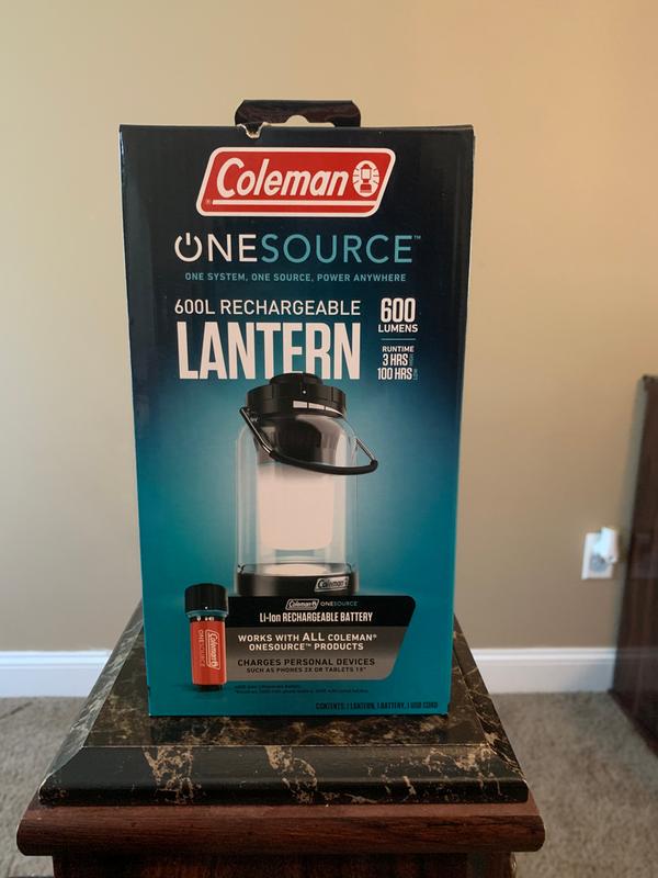Part of a system that powers outdoor gear the onesource 1000 lumens led lantern lights the night up to 2 hours high or 100 hours low on a full charge of the lithium ion battery included. Coleman lantern rugged rechargeable l ion c002. Providing 300 lumens of light this unit is powered by a usb rechargeable battery has a separate charging port and also features so you can charge your usb compatible devices.