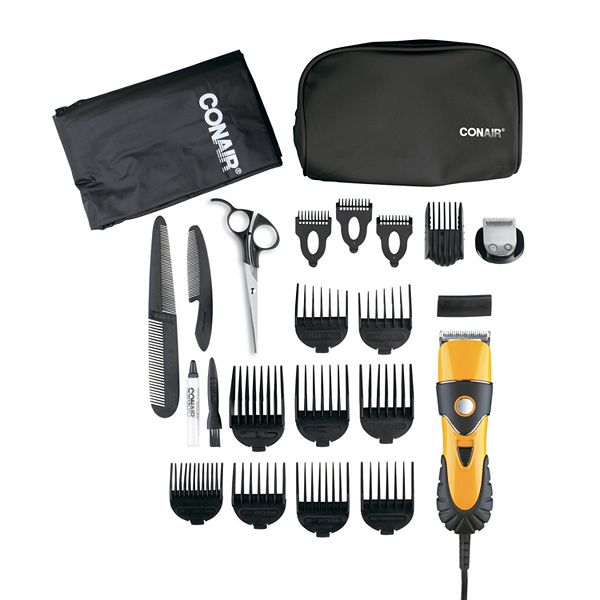 The conair lithium ion cordless clipper set comes with 20 pieces to help you effortlessly cut hair. This men s hair clipper has an optional power cord with a rechargeable battery. The taper control along with the super sharp hardened steel blade delivers precision performance for a perfect cut.