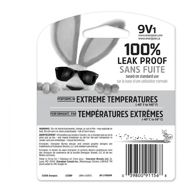 It performs in extreme temperatures from negative 40 to 140 degrees fahrenheit. These 9v lithium batteries are ideal for oem applications including medical wireless security safety and industrial uses or as a consumer replacement battery in 9 volt devices for home safety music audio and other recreational applications. 2 pack of energizer ultimate lithium 9v batteries our longest lasting 9v battery powers your most critical devices ideal for your smart home devices outdoor surveillance systems digital cameras and handheld games holds power up to 10 years in storage for trustworthy backup energy so you re always prepared.