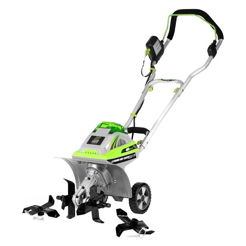 Earthwise tc70040 11 inch 40 volt lithium ion cordless electric tiller cultivator 4ah battery charger included. The dirty little secret of great gardeners. Put the back breaking work of tilling tough turf behind you and break some ground with the power packed 24 volt cordless tiller cultivator from sun joe.