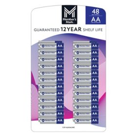 Member s mark alkaline aa batteries 48 pk sam s club member s mark alkaline aa batteries 48 pk has everything you need to keep your electronic devices requiring aa batteries going for a long time. 4 3636 out of 5 stars based on 11 reviews 11 in club only. It has all five major batteries in the company s private label and you just save money sam s club s store brand member s mark is available in aa aaa c d and 9 volt sizes.