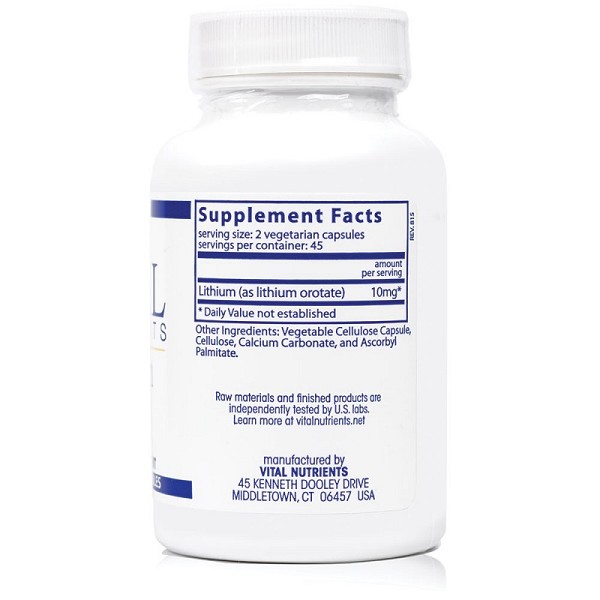 Lithium is an alkali metal found in trace amounts of most rocks as well as mineral springs ocean water and nearly all vertebrate tissue. Vital nutrients lithium orotate 20 mg. Vital nutrients lithium 20 mg 90 capsules vitacost vital nutrients lithium description.