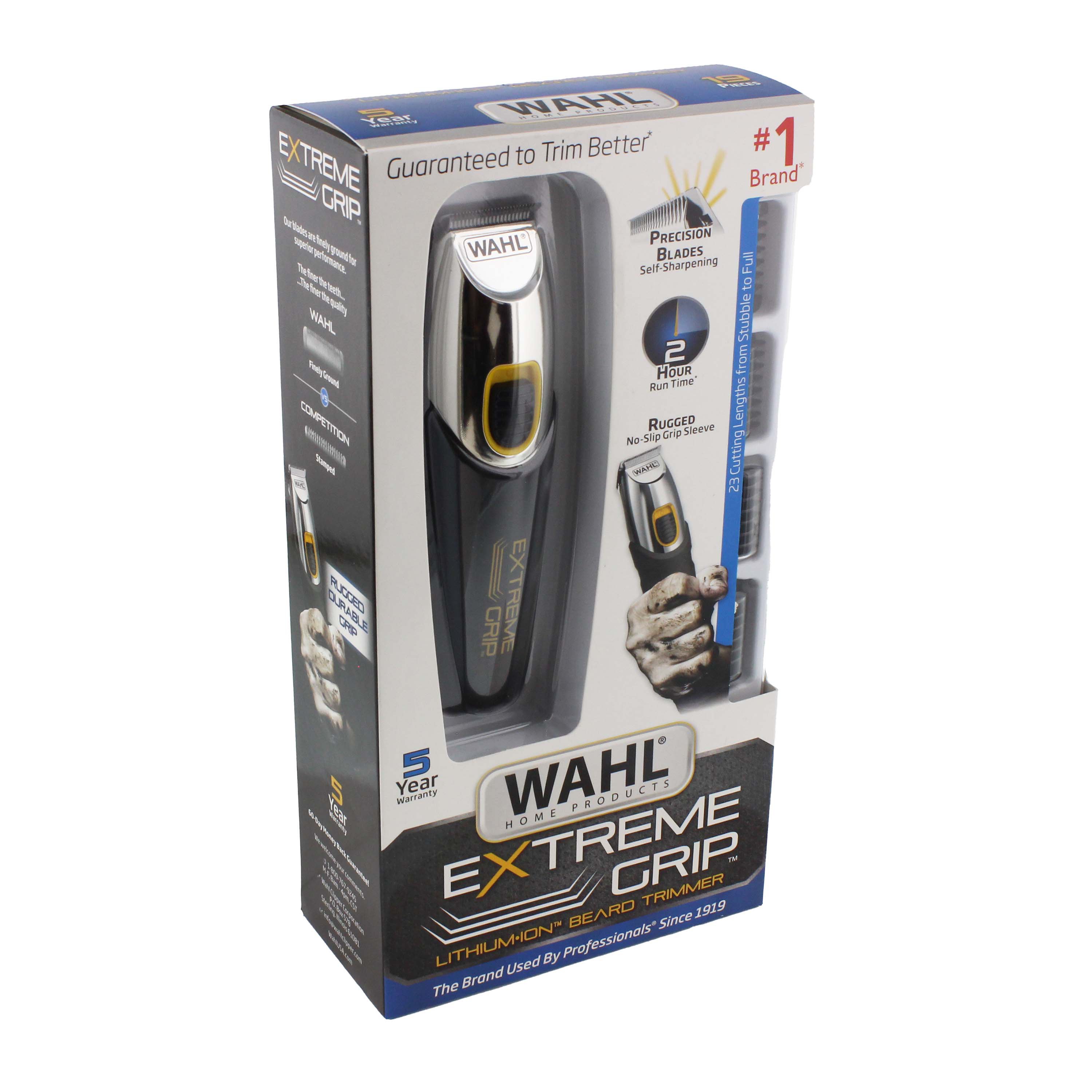 Wahl lithium ion beard trimmer stainless steel 09818. This type of battery more effectively charges and keeps the charge longer than ordinary batteries. The wahl lithium ion total beard trimmer comes with trimmer unit trimmer blade 13 guide combs charger beard comb cleaning brush and blade oil storage pouch and english spanish instruction and styling guide.