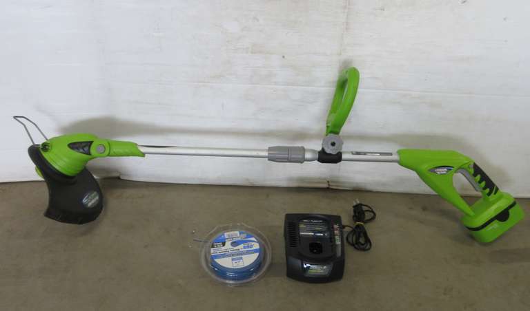 Earthwise 12 inch cordless electric string trimmer. The new lithium ion battery offers fade free power from start to finish.